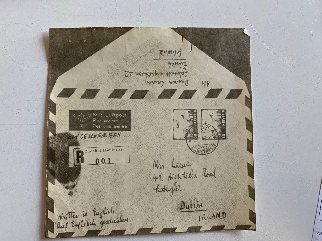 Resigned to sitting out the war in Switzerland, Laracy found work giving private lessons and writing articles for the British daily, the News Chronicle, but largely lived on money her parents managed to send from Dublin. With the short-stay visa that allowed her to stay in Berne close to expiring, she moved to the bigger city of Zurich, ostensibly to undertake research on a book on Italy she had been commissioned to write. She was to stay in that city for most of the next three years, during which time she visited James Joyce’s widow, Nora, on at least one occasion.